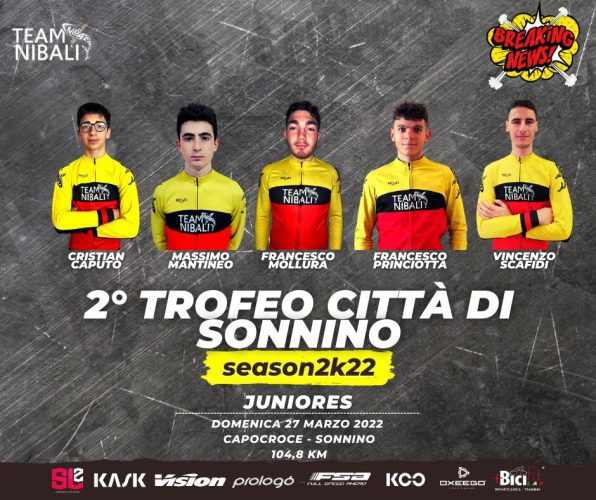 In provincia di Latina, a Città di Sonnino, il ds Pippo Cipriano guiderà la selezione juniores del Team Nibali formata da Cristian Caputo, Massimo Mantineo, Francesco Mollura, Francesco Princiotta e Vincenzo Scafidi, sarà impegnata nel 2° Trofeo Città di Sonnino.