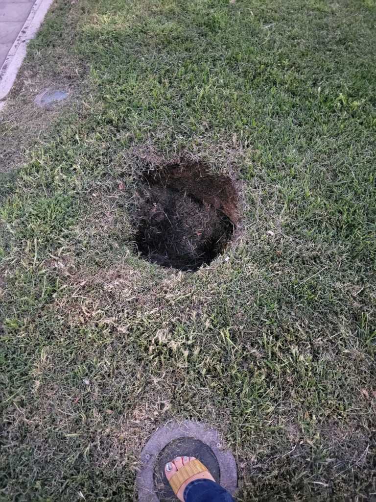 Una bambina è caduta nella buca lasciata dall'espianto di un tronco di palma. Abbiamo verificato che nel frattempo il problema è stato risolto
