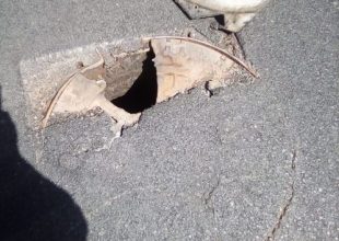 Segnalazione WhatsApp: “Per andare alla villetta di Giostra si va incontro a questa buca che mi ha fatto forare la gomma e ammaccare il cerchione!!!”