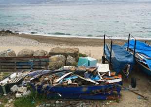 Un vasto tratto di marciapiede nei pressi della rotatoria di viale Regina Elena pieno di rifiuti e spazzatura
