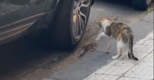 Via Risorgimento, il topo intimorisce il gatto VIDEO