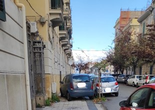 Panoramica.Erbacce e rifiuti invadono marciapiede