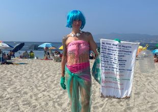 Una sirenetta a Capo Peloro: raccoglie le sigarette e “bacchetta” chi le lascia in spiaggia VIDEO e FOTO