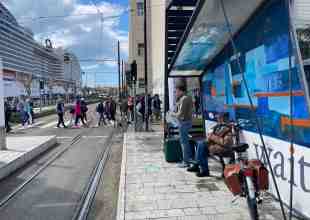 Fermata del tram “Municipio”, l’artista ripara la pensilina vandalizzata. Il sindaco lo ringrazia VIDEO