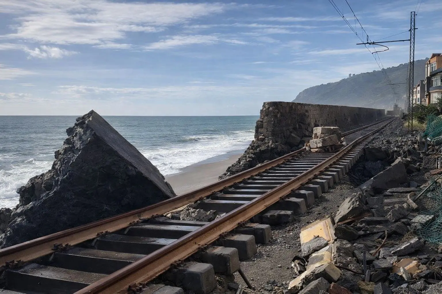 Le violente mareggiate che stanno colpendo la costa ionica siciliana hanno provocato danni gravissimi alla linea ferroviaria. Nel tratto tra Messina e Catania la ferrovia risulta danneggiata in più punti, con la circolazione dei treni completamente sospesa. La situazione più critica si registra a Scaletta, dove i binari sono rimasti letteralmente sospesi nel vuoto a causa dell’erosione del terreno sottostante. Interrotta l’intera tratta Messina-Catania-Siracusa, con numerosi convogli fermi lungo la linea. Solo in alcuni casi sono stati predisposti servizi sostitutivi con autobus, mentre proseguono le verifiche tecniche per valutare l’entità dei danni e i tempi necessari al ripristino della circolazione.
