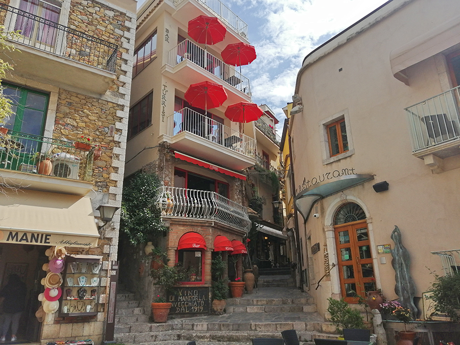 CASTELMOLA. Il gruppo di turisti giapponesi giunti in tarda mattinata osserva estasiato dall’alto lo Jonio che all’orizzonte sembra unire Sicilia e Calabria. Sullo sfondo, in basso, Taormina: la Perla dello Jonio. Piazza “S. Antonio” (che qui tutti chiamano “Piazza Porta”) è una “terrazza sul paradiso terrestre”, commenta un vacanziere che insieme alla moglie ed al figlio è giunto in questo lembo di Sicilia dal Nord Europa.