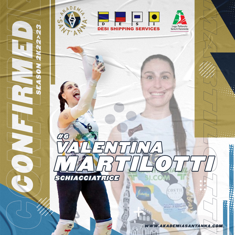 Per la Martilotti si tratta di un ritorno in Serie A2 per la Martilotti. “Il cuore mi ha spinto a proseguire – queste le parole della confermata numero 6 – Akademia è diventata una seconda famiglia e la famiglia non si lascia a combattere da sola. Sono molto emozionata: è da tanto tempo che non partecipo ad un campionato di A2 e, quindi, non vedo l’ora di iniziare questa bellissima avventura insieme alle mie vecchie e nuove compagne. Ci vediamo presto e forza Akademia”.
