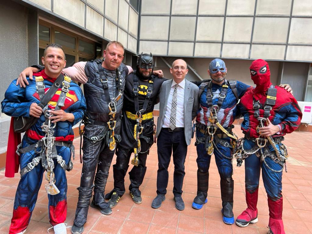 Batman, Spiderman e gli altri eroi di film e fumetti hanno "scalato" i palazzi dell'ospedale per far visita ai bambini. Firenze: "Volevamo portar loro un sorriso"