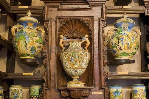 Presso la farmacia sono ospitati 238 vasi, modellati nel 1580, di particolare interesse storico e artistico. I vasi, provenienti dalla famosa bottega urbinate di Mastro Antonio Patanazzi, portano tutti lo stemma di Cesaro Candia.