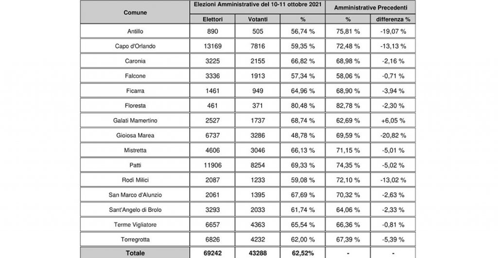 Alle 14 era già sindaco Giusy Tindara La Galia a Gioiosa Marea, dove l’unica candidata attendeva soltanto di sapere se era stato raggiunto il quorum dei votanti per considerare valida l’elezione.