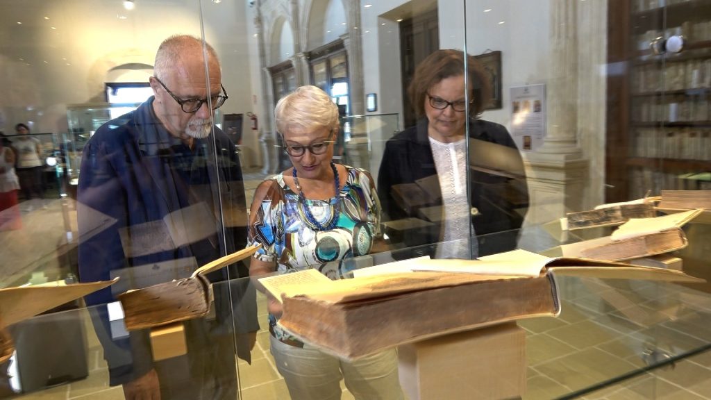 Francesca Gullotta, assessore alla Cultura di Taormina, Mario Bolognari, sindaco di Taormina, e Annamaria Piccione hanno raccontato l’aspetto organizzativo della mostra. Mentre lo staff della sezione Beni Bibliografici e Archivistici della Soprintendenza di Messina ha illustrato l’evoluzione della produzione libraria. Dai testi in carattere gotico tipico della stampa del Quattrocento ai frontespizi riccamente decorati preludio dello stile barocco. Le immagini hanno poi fatto il resto mostrando il prezioso fondo antico della città di Taormina. I sei incunaboli e le trentasei cinquecentine, i libri di storia e i trattati di teologia, le stampe antiche e le carte geografiche.