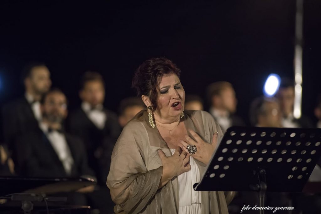 Ad aprire la serata, presentata a dovere dallo stesso Costa, è stato il brano “Norma, viene” un vero e proprio omaggio al compositore catanese di cui il CLS è ambasciatore all’estero. «Questo teatro è un luogo unico – ha sottolineato il direttore del Coro – nel quale amiamo esibirci soprattutto per il calore e l’affetto che ogni volta il pubblico ci riserva». Dopo la cavatina di Lord Enrico Ashton, “Cruda, funesta smania”, dalla “Lucia di Lammermoor” in cui si è distinto per bellezza vocale e tecnica sicura Alberto Maria Munafò, presidente del CLS, è stata la volta del soprano Dimitra Theodossiou, avvolta nel suo lungo abito color crema, che ha superbamente interpretato l’aria “Suicidio” dalla “Gioconda” di Ponchielli. L’artista che per la prima volta si è esibita nella suggestiva cornice del Teatro Greco di Tindari dopo aver calcato i principali teatri lirici al mondo diretta da nomi di pregio quali Oren, Abbado, Chailly e Muti ha regalato uno dei momenti più sacri della serata con “La Vergine degli Angeli” da “La forza del destino”. A seguire l’oscuro trittico del “Macbeth” composto da l’aria di Banco “Come dal ciel precipita”; dal coro dei profughi scozzesi “Patria oppressa!” per concludersi con il brindisi di Lady Macbeth, in cui sia il soprano sia il Coro hanno ricevuto un grande ovazione.