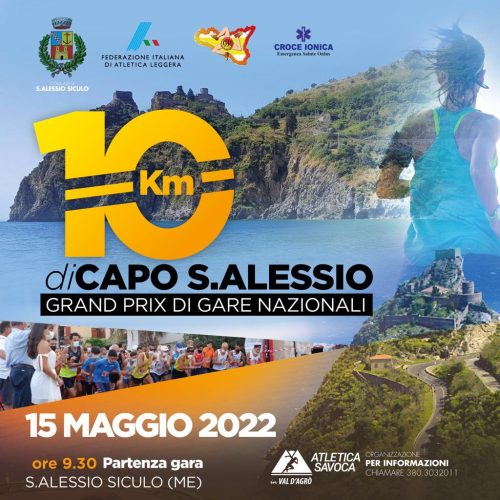SANT’ALESSIO SICULO – Si è fatta attendere un pò, ma sarà ancora più affascinante la “10 km di Capo Sant’Alessio”, in programma domenica 15 maggio e valida come 6ª prova della 27ª edizione del “Grand Prix Sicilia” di corsa su strada.