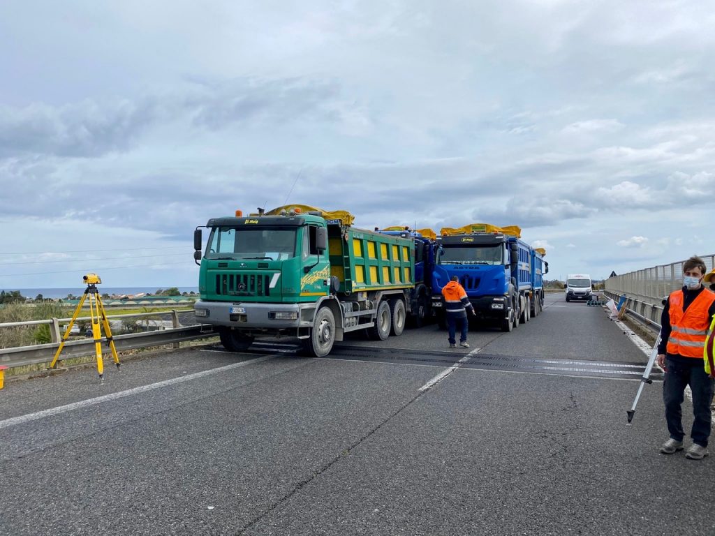 Sono stati disposti sul viadotto 4 automezzi del peso di 400 quintali ciascuno e due da 330 quintali, per un carico complessivo di 2.260 quintali. Le prove di carico, eseguite alla presenza dei tecnici e del consulente scientifico dell’Università di Messina, prof. Antonino Recupero, hanno mostrato chiaramente l’assenza di frecce residue allo scarico. Le verifiche sul viadotto Mazzarrà proseguono anche oggi nella carreggiata opposta, in direzione Messina.