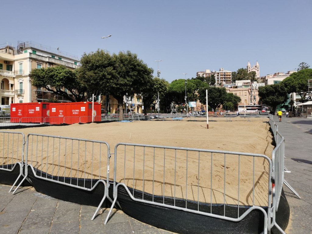 Sui campi, intanto, sono stati posizionati i pali per le reti e a breve, forse già dalle prossime ore, le “vasche” di sabbia attualmente al centro della piazza inizieranno a cambiare forma. Quando il campo sarò tracciato e completato, anche alla vista si potrà assistere a uno spettacolo totalmente diverso. E mentre i turisti e i messinesi si fermano curiosi, all’evento manca sempre meno. Già da martedì 27 potrebbero arrivare in città i primi atleti con i relativi staff e calcare i campi d’allenamento, in vista delle prime gare ufficiali, in programma invece giovedì prossimo, tra meno di una settimana.
