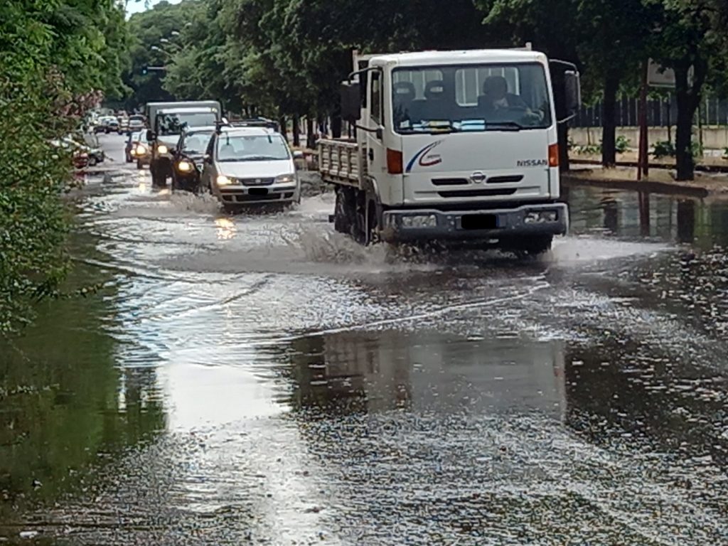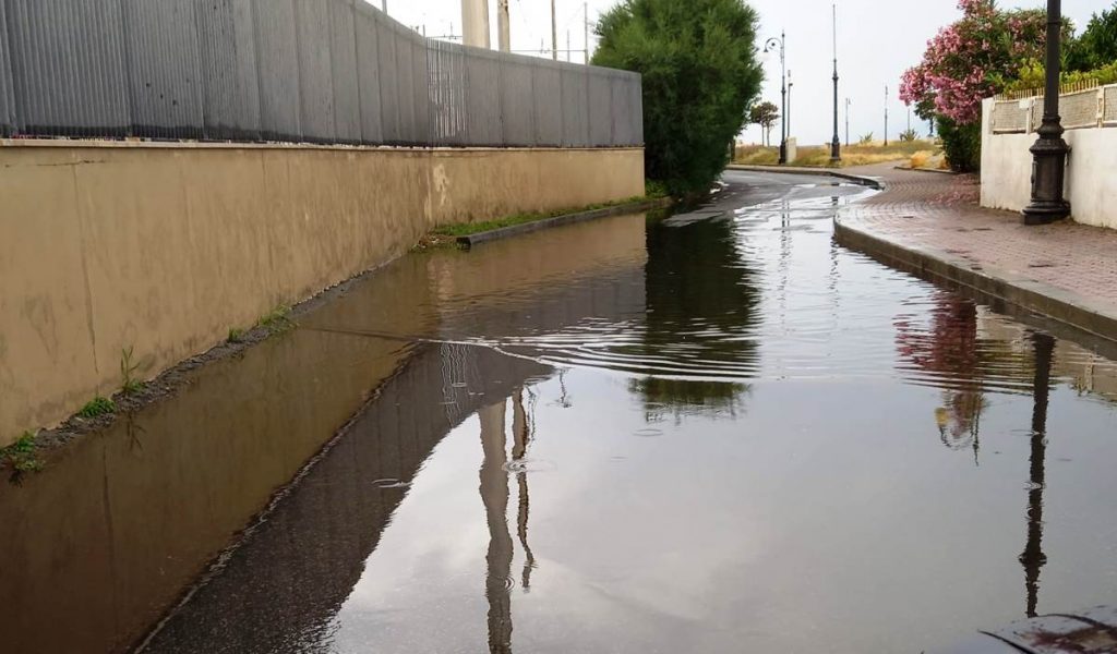 I primi tre ci mostrano la situazione in un viale Calabria a tratti ridotto a un laghetto.