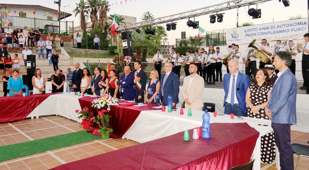 FURCI SICULO – Un secolo di autonomia. La comunità di Furci ha celebrato l’evento con un solenne corteo che dal palazzo municipale si è snodato lungo la Statale 114 sino all’anfiteatro della Villa comunale, dove ha avuto luogo una seduta straordinaria del Consiglio comunale.
