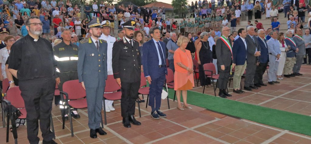 Saluto anche il comandante temporaneo per il periodo estivo della polizia municipale di Furci Salvatore Campagna, le numerose associazioni del territorio, gli scout, la pro loco. Ringrazio inoltre i dipendenti comunali presenti e che hanno collaborato alla realizzazione dell’evento. Per ultimo, voglio ringraziare il sottosegretario al Ministero degli Interni sen. Stefano Candiani, non presente per sopravvenuti impegni ma che è presente con un video di saluti che proietteremo.