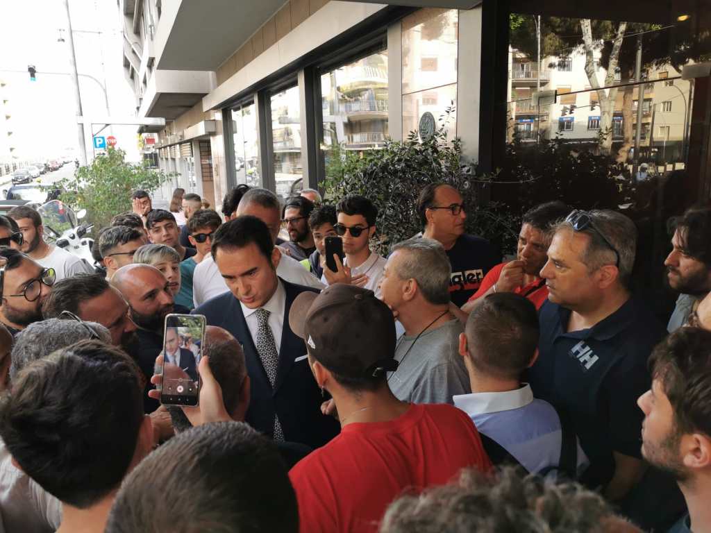 Ad aspettare Mannino fuori dal Royal Palace Hotel un gruppo di ultras, preoccupati per le sorti del Messina. L’imprenditore si è fermato a dialogare con loro rispondendo alle domande dei tifosi.