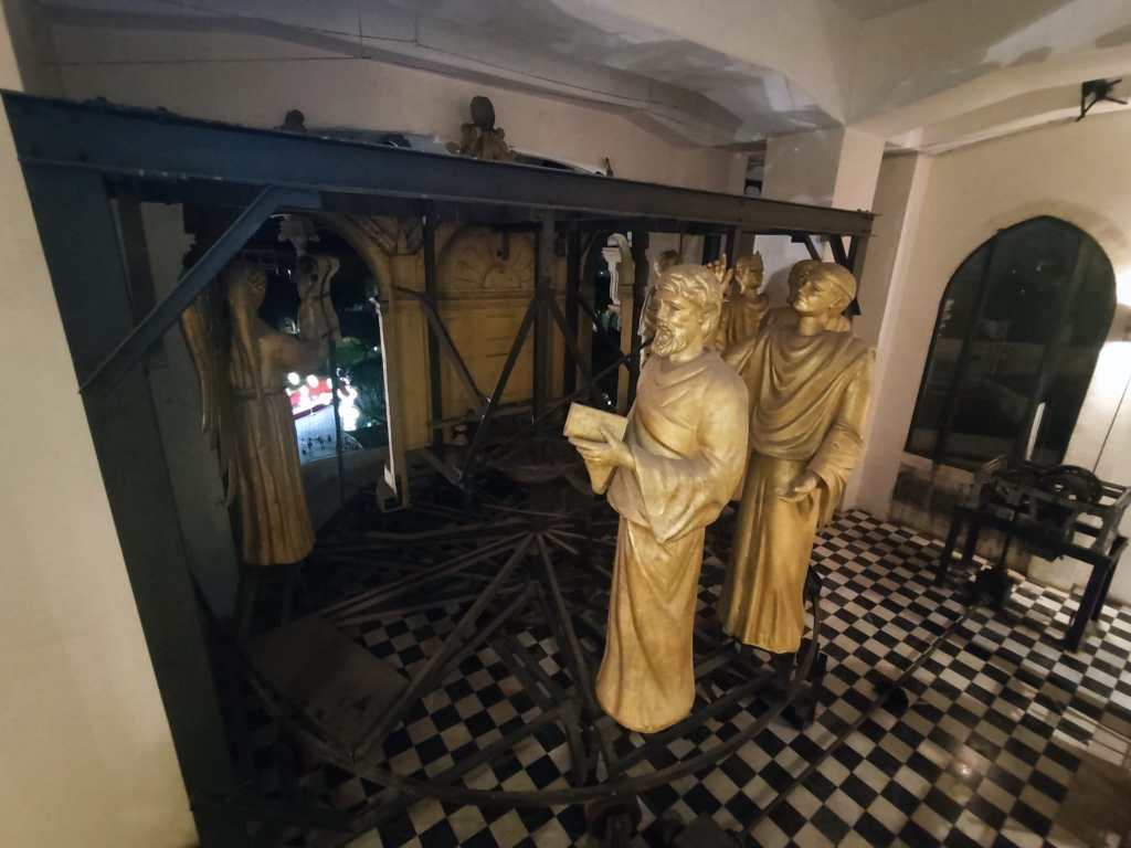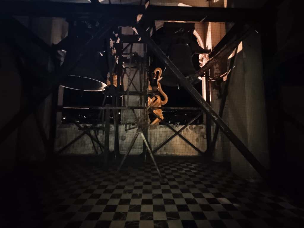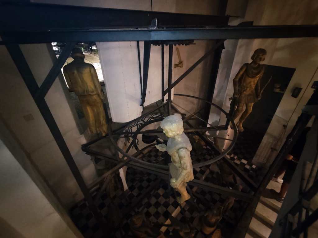 Il meccanismo si muove ogni giorno alle 12 e dura 12 minuti. Ogni quarto d’ora durante la giornata si muovono le due eroine ai lati del gallo, Dina e Clarenza, che battono i quarti e le ore, e il carosello delle età.
