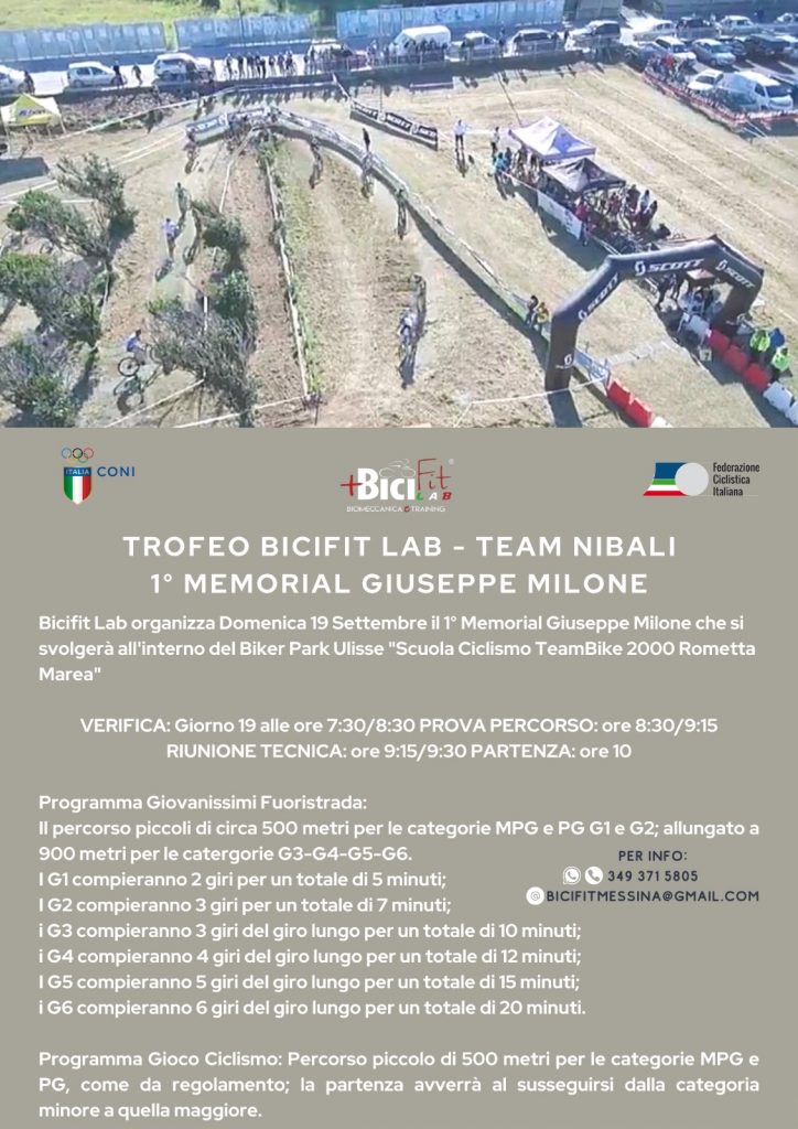 ROMETTA – Previsto per domani, domenica 19 settembre, il 1° Memorial Giuseppe Milone – Trofeo Bicifit Lab Team Nibali all’interno del Biker Park Ulisse “Scuola Ciclismo TeamBike2000” a Rometta.