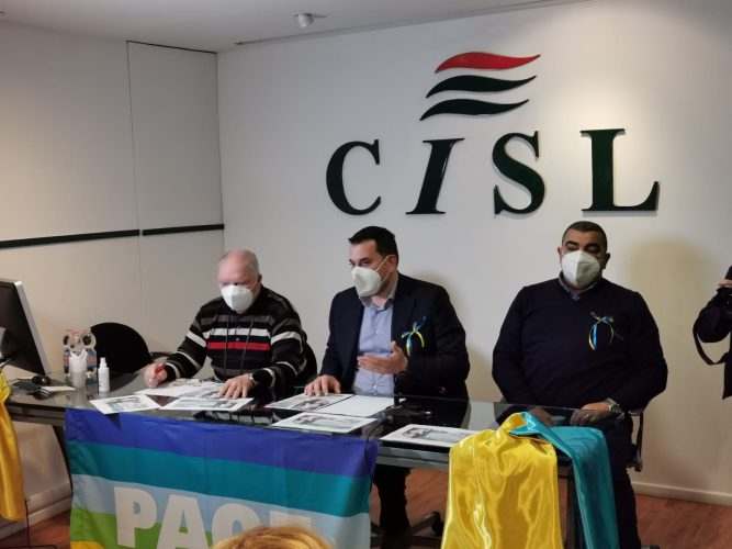 Nel corso della mattinata il segretario generale della Cisl Messina, Antonino Alibrandi, il presidente di Anteas Cisl Bruno Zecchetto e Carlo Mastroeni, presidente di Anolf Cisl, l’associazione che tutela i diritti degli stranieri, hanno presentato “Insieme per la pace”. Il sindacato e le associazioni aderiscono così alla campagna nazionale targata Cisl.
