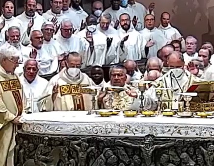 Nelle fasi conclusive del rito non manca il coinvolgimento di uno dei predecessori nel ruolo arcivescovile, monsignor Vittorio Mondello, in questo 2022 al 62esimo anno di sacerdozio.
