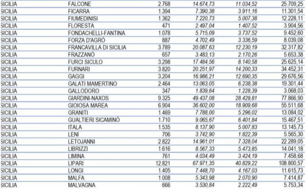 I FONDI IN TUTTI I COMUNI MESSINESI