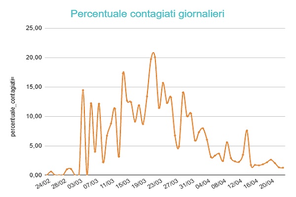 Continua a scendere la percentuale di positivi al coronavirus in Sicilia. Calo leggerissimo rispetto a ieri, da 1,32 a 1,26 %, ma si conferma una percentuale molto bassa di contagi ormai dal 15 aprile, quando era stata dell’1,71 %.