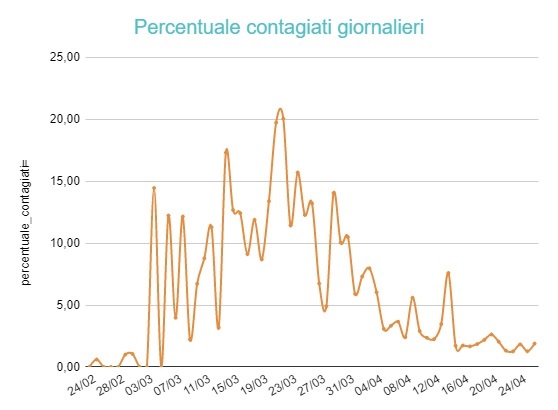 Ieri e tre giorni fa il punto minimo, 1,26 % di contagiati, oggi si torna alla percentuale di avantieri e su un numero minore di tamponi, anche a causa della giornata festiva. Su 1.853, ne sono risultati positivi 35, cioè l’1,89 %. La percentuale resta comunque sotto o intorno al 2 % ormai dallo scorso 15 aprile.