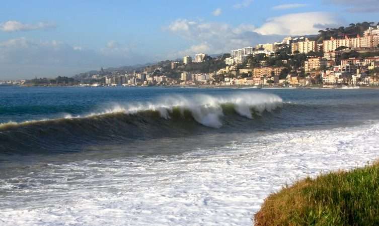 Tutto inizia a sud, nel vasto Mar Ionio, dove il vento di scirocco soffia con forza, formando i primi cavalloni. Questo vento impetuoso spinge il mare per centinaia di chilometri, generando onde robuste, chiamate “onde vive”. Queste onde, che durante le burrasche possono essere alte in media 3-4 metri ma con picchi che possono superare i 5 metri, sono come treni d’acqua che viaggiano verso nord, cariche di energia. Hanno creste regolari, un ritmo costante e una lunghezza di circa 100 metri, come un campo da calcio che si muove sul mare.