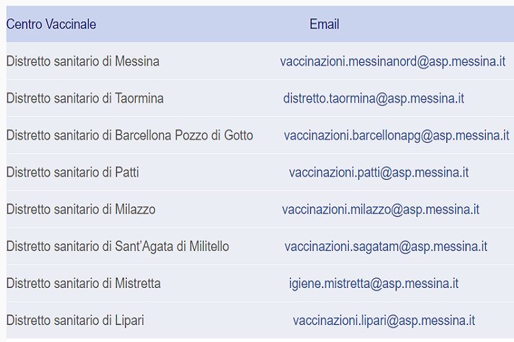 Gli indirizzi mail dei centri vaccinali