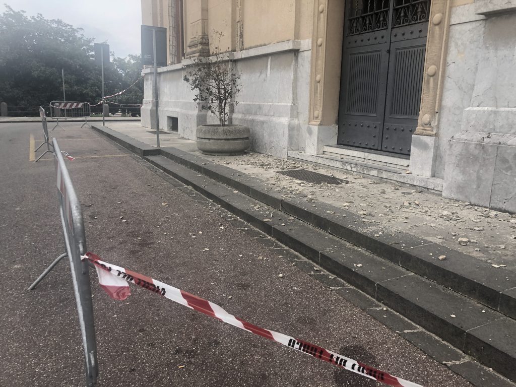 Pesanti pezzi di cornicione si sono staccati dalla parete laterale del Comune