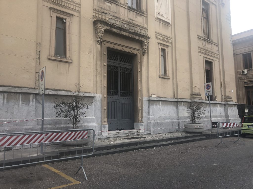 Si tratta di un episodio che segue quello che si era verificato lo scorso 25 dicembre, quando dalla facciata principali si erano staccati pezzi del fregio che si trova sul tetto del Municipio.