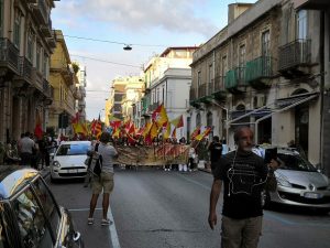 Forse possono sembrare un po’ bizzarri nell’attraversare la strade al grido di “Sicilia libera”, per quanto invece oggi, con un’emorragia costante di energie, giovani, risorse, cervelli, braccia, verso il nord, sia un grido attuale. Oggi che siamo periferia sociale e del consumo. Oggi che siamo colonia che porta voti ma non ha alcun ritorno.