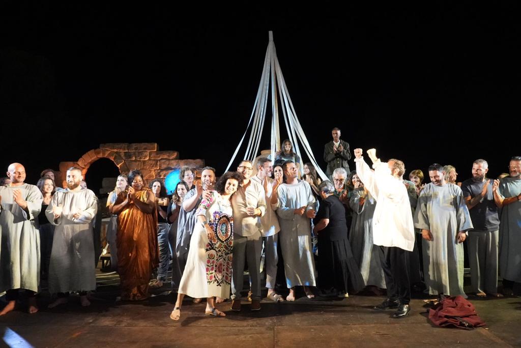 TINDARI – Applausi a scena aperta per lo spettacolo “Contrada luna” con musica e teatro. Nell’ambito del progetto speciale “Tindari a cielo aperto – uno spazio di libertà”, nel cartellone del Tindari Festival, al Teatro greco di Tindari, è andato in scena uno spettacolo di e con Mario Incudine e la Libera Compagnia del teatro per Sognare dei detenuti – attori della Casa Circondariale di Messina. Uno spettacolo applauditissimo all’interno della rassegna che ha la direzione artistica dell’attore siciliano Tindaro Granata.