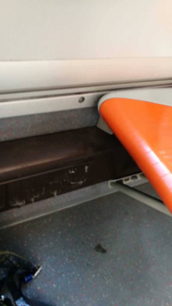 Foto di bus sporco inviata al numero per le segnalazioni Whatsapp di Tempostretto