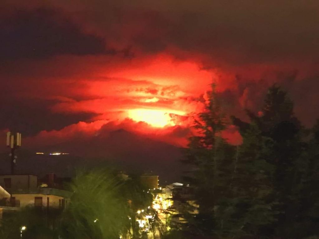 Le fontane di lava hanno illuminato le nubi che coprivano il vulcano