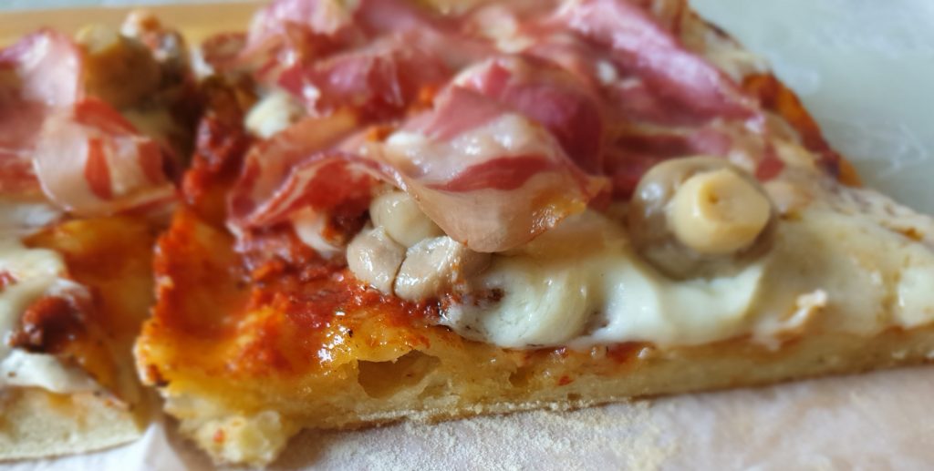 Questa che vedete nelle foto è quella che ho fatto io a casa mia in un normalissimo forno casalingo. Vi garantisco che era favolosa ! Croccante fuori e morbida dentro con una bellissima alveolatura che potete notare nella foto in alto.