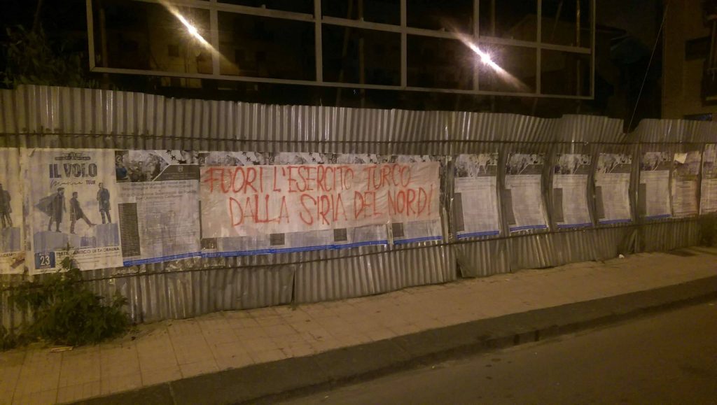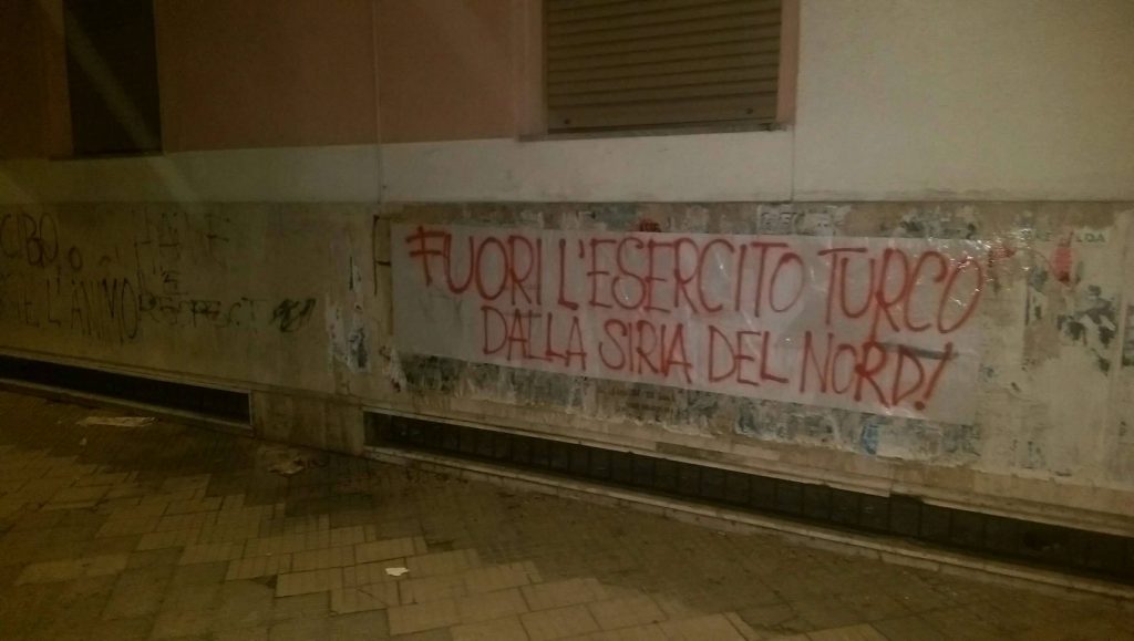 Stamani, Messina si è svegliata tappezzata di striscioni con la scritta: “Fuori l’esercito Turco dalla Siria del Nord”. Dunque, anche la nostra città – come altre in Italia – manifesta solidarietà al popolo curdo.