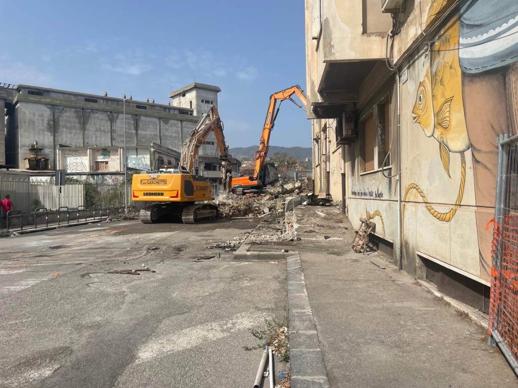 MESSINA – Dopo il primo colpo di martello dato simbolicamente dal sindaco Federico Basile e dall’ex Cateno De Luca in occasione dell’evento Sud Innovation Summit, proseguono i lavori di demolizione nell’area in cui sorgerà l’I-Hub dello Stretto.