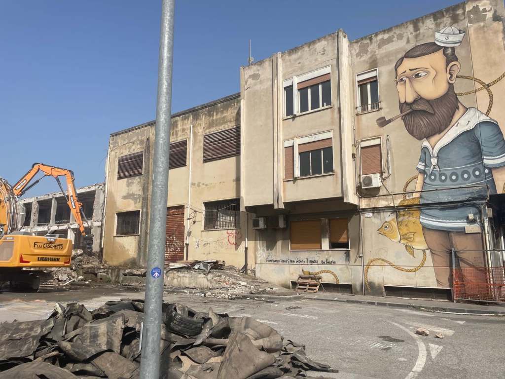 Le ruspe sono in azione da un paio di giorni e il primo edificio a cadere è stato quello della Casa di Vincenzo, l’ex rifugio per senzatetto aperto negli anni dell’amministrazione Accorinti, oggi sostituito dal centro “Fratelli Tutti”. Con il vecchio edificio, ormai in disuso, sono andate distrutte anche le opere di street art. Ecco gli altri murales che nelle prossime settimane faranno parte di quei cumuli di macerie.
