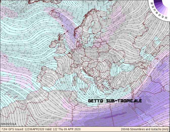 Ultimamente l’asse del “getto sub-tropicale”, presente sopra l’Africa settentrionale, ha cominciato gradualmente a salire di latitudine, iniziando pian piano ad interagire, sempre più da vicino, con il “getto polare”, che scorre alle medio-alte latitudini, tra l’Atlantico settentrionale e il continente europeo, spesso con ampi “delta” (diramazione del ramo principale in due rami secondari) posizionati tra il Pacifico settentrionale e il nord Atlantico. Salendo sempre più di latitudine il ramo principale del “getto sub-tropicale” tenderà ad accoppiarsi con il ramo principale del “getto polare”, anche nell’area mediterranea e in Medio Oriente, come spesso avviene proprio fra aprile e maggio.