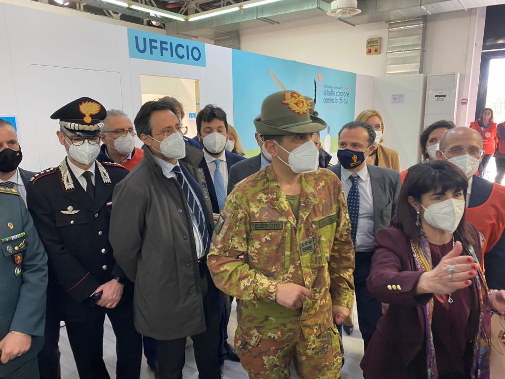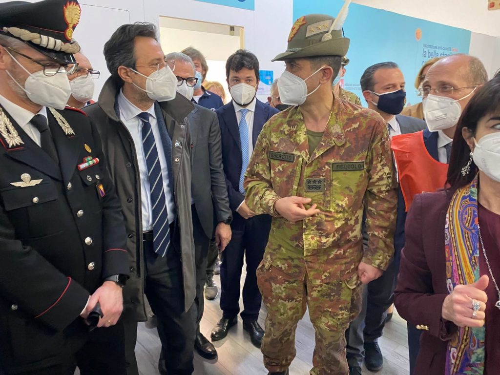 Poi conclude: “Non esiste alcuna disparità tra le regioni, 11 milioni di dosi sono in distribuzione equa“. Dopo una brevissima battuta di carattere generale, Figliuolo è andato via di fretta. In Fiera è rimasto invece, per una riunione operativa, il funzionario della Protezione Civile nazionale della Presidenza del Consiglio dei Ministri Gabriele Armeno.