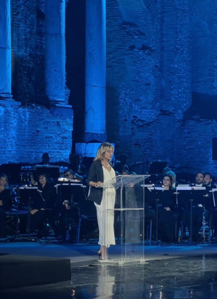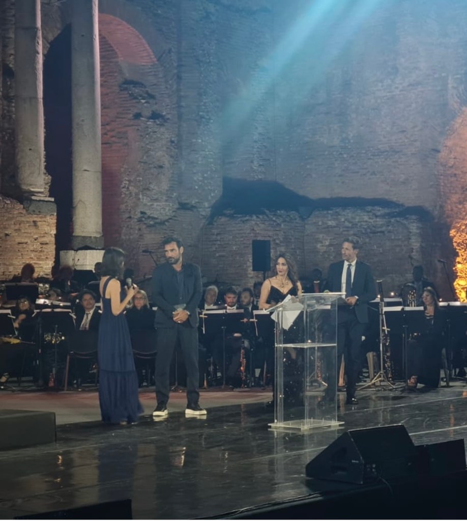 Nella magia del Teatro Antico di Taormina, la serata si apre con la grande musica dall’Orchestra del Teatro Massimo Bellini di Catania, diretta dalla maestra Gianna Fratta. A dare forma e movimento alle note, la danza del Katatklò Athletic Dance Theatre, in un connubio artistico dall’impatto emotivo fortissimo.