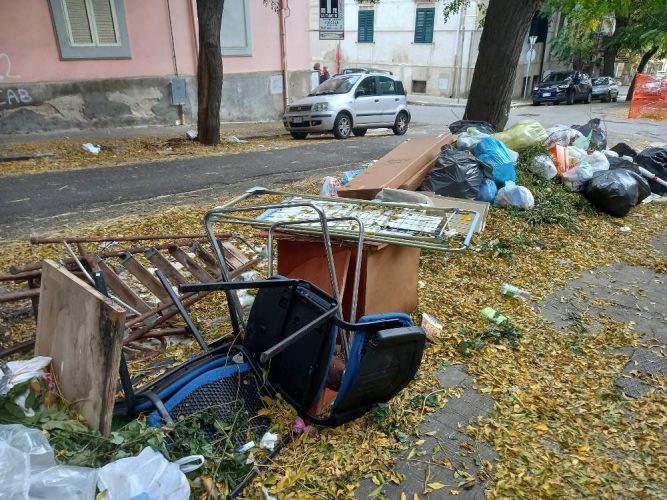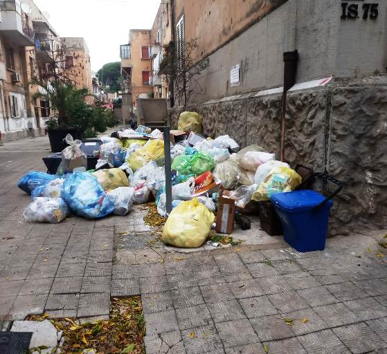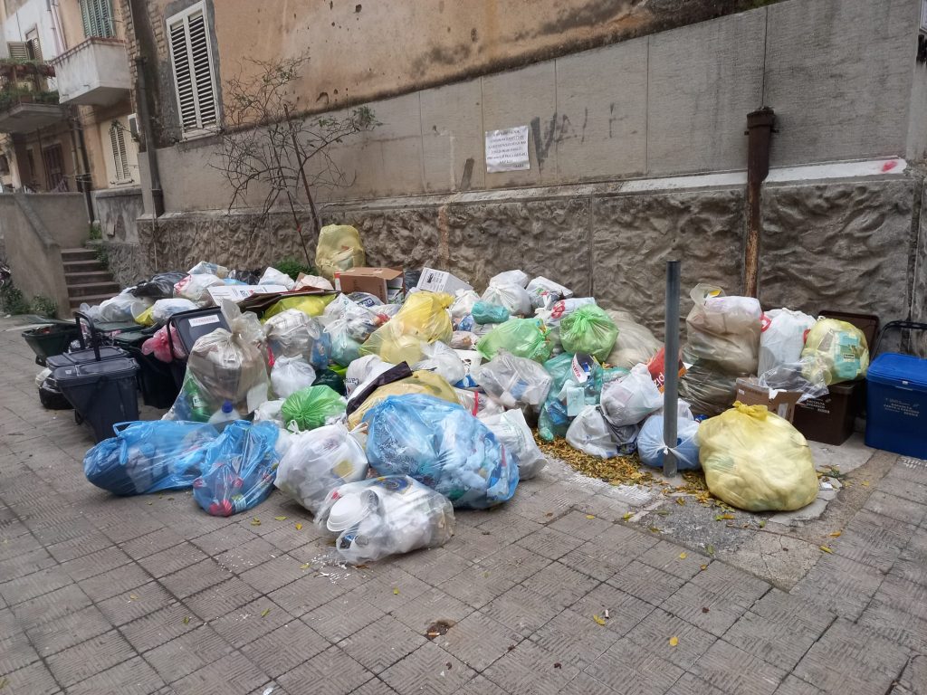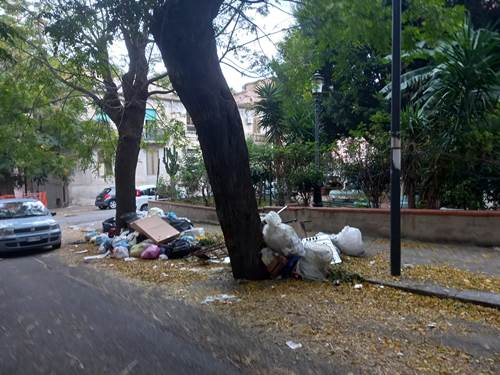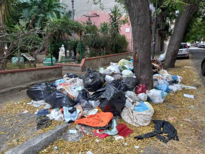 Strade e marciapiedi stracarichi d’immondizia un po’ ovunque, attorno a Palazzo Campanella, dove oggi prenderà il via la 12^ consiliatura