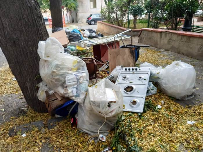 In effetti, c’è ben altro. Per esempio, la spazzatura in ogni angolo di strada, sui marciapiedi, in mezzo alla carreggiata, tutto intorno ai mastelli… Ovunque.