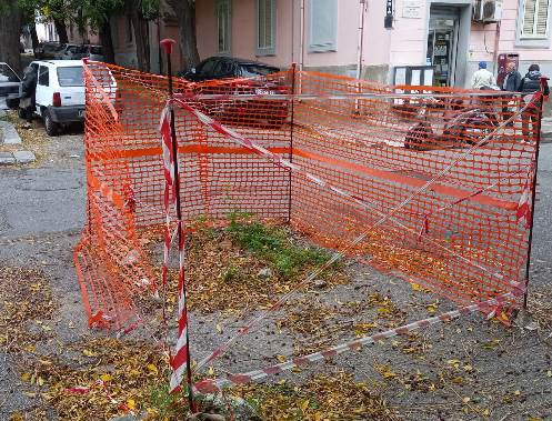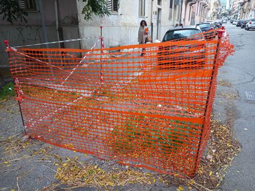 E non mancano gli esempi d’umorismo involontario. Esempio tipico, il cartello in una delle traverse, che invita i signori condòmini dello stabile a rispettare gli orari della differenziata… L’esito reale è quello che mostrano le foto: e non è risultato visibile solo a un’ora particolare, ahinoi.