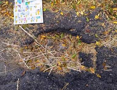 …E quindi sedie scassate e lerci cumuli di sacchi neri, bianchi, gialli, rosa. Una branda con le doghe rotte ben in vista, enormi involucri di cartone svuotati – almeno quello! – del contenuto, stendini per i panni a fine-vita… Griglie per i fuochi di una cucina, mobili fatti a pezzi, poltroncine…