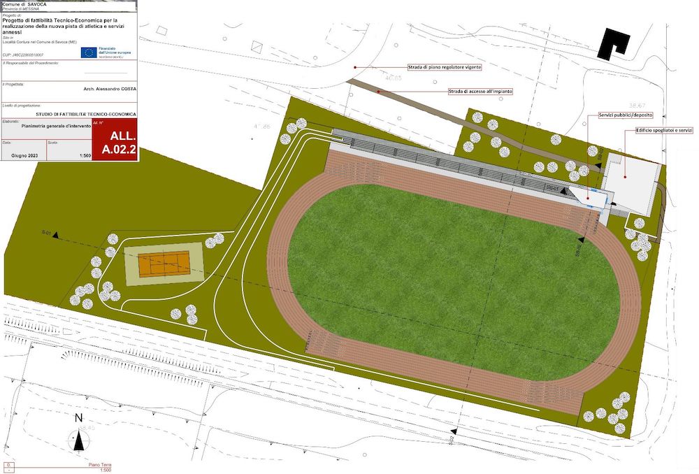 Già un paio d’anni, l’amministrazione aveva individuata l’area su cui far sorgere il nuovo impianto. Adesso è stato affidato l’incarico per la realizzazione del nuovo “Centro di Atletica Leggera” all’architetto Alessandro Costa, il quale, con la collaborazione dell’architetto Carmelo Casale, ha tenuto conto delle indicazioni dell’Amministrazione, e dei suggerimenti del tecnico della società sportiva “Atletica Savoca”, Antonello Aliberti che ha seguito l’intero iter progettuale e coadiuvato il sindaco nelle riunioni degli ultimi mesi.